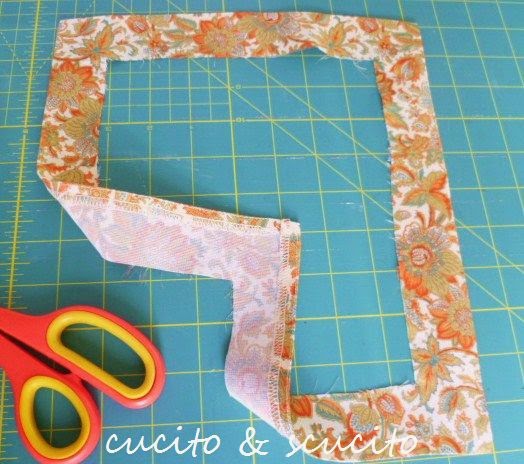 -Tagliamo lungo la linea 4 tracciata e riposizioniamo le due parti del cartamodello sulla stessa linea d'orlo.